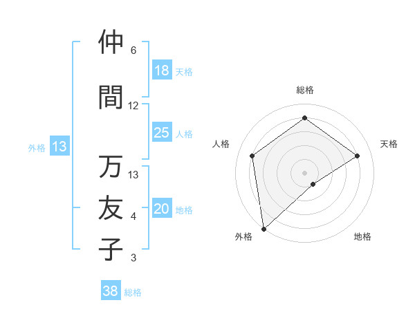 仲間 万友子さんを姓名の画数から五運を鑑定