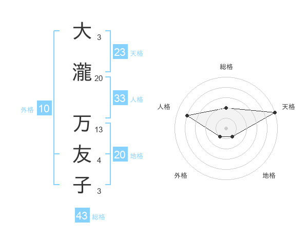 大瀧 万友子さんを姓名の画数から五運を鑑定
