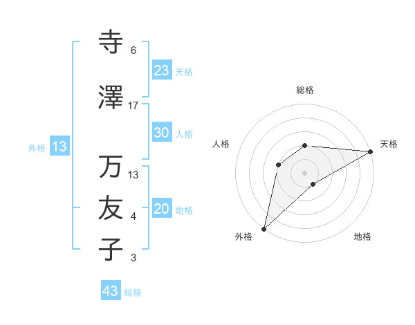 寺澤 万友子さんを姓名の画数から五運を鑑定