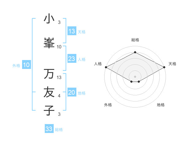 小峯 万友子さんを姓名の画数から五運を鑑定