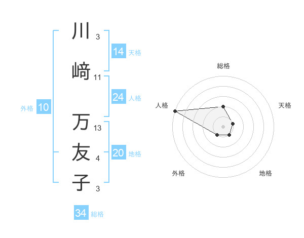 川﨑 万友子さんを姓名の画数から五運を鑑定