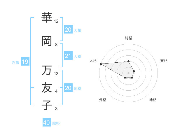 華岡 万友子さんの総格は40画の2点!