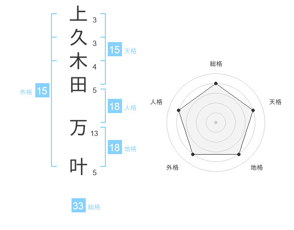 上久木田 万叶さんを姓名の画数から五運を鑑定