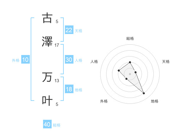 古澤 万叶さんを姓名の画数から五運を鑑定