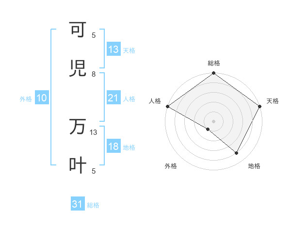 可児 万叶さんの総格は31画の5点!