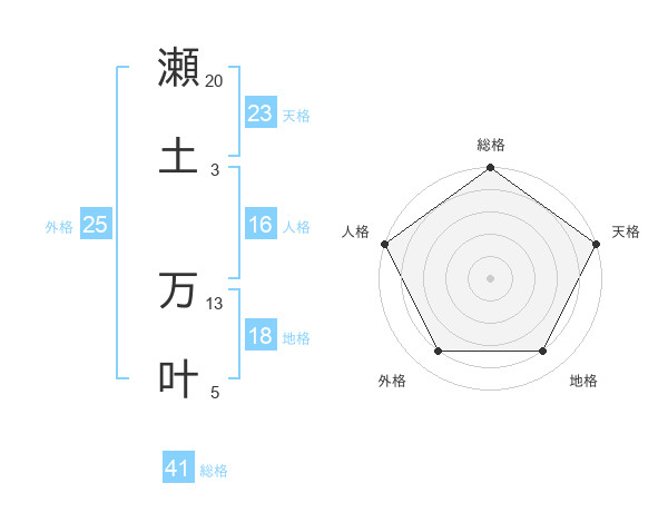 瀬土 万叶さんを姓名の画数から五運を鑑定