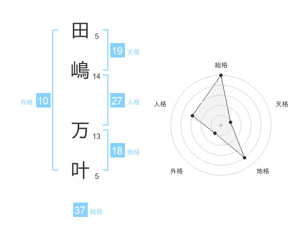 田嶋 万叶さんの総格は37画の5点!