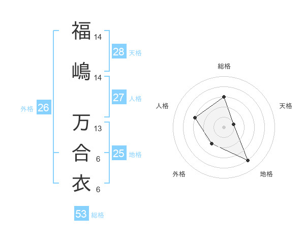 福嶋 万合衣さんを姓名の画数から五運を鑑定