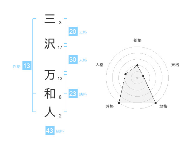 三沢 万和人さんを姓名の画数から五運を鑑定