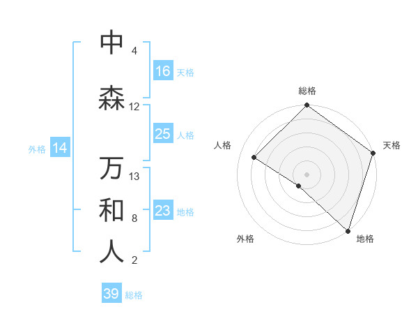 中森 万和人さんの総格は39画の5点!