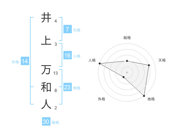 井上 万和人さんの総格は30画の2点!