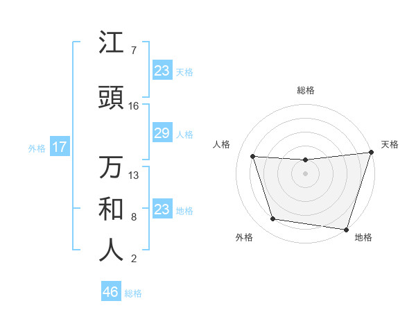 江頭 万和人さんの天格は23画の5点!