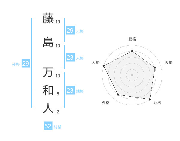 藤島 万和人さんの総格は52画の4点!