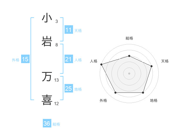 小岩 万喜さんを姓名の画数から五運を鑑定