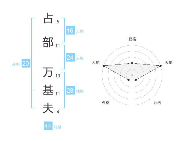 占部 万基夫さんを姓名の画数から五運を鑑定