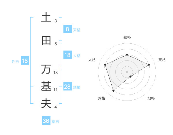 土田 万基夫さんを姓名の画数から五運を鑑定
