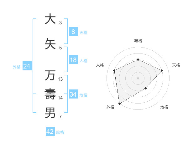 大矢 万壽男さんを姓名の画数から五運を鑑定