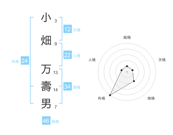 小畑 万壽男さんの天格は12画の1点!