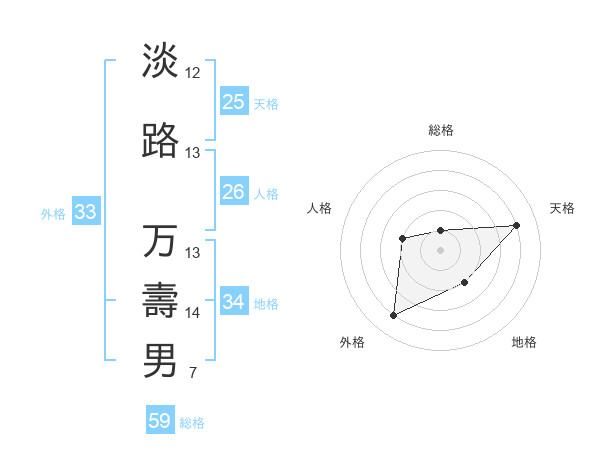 淡路 万壽男さんの総格は59画の1点