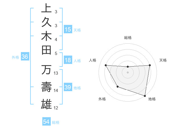 上久木田 万壽雄さんを姓名の画数から五運を鑑定