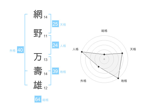 網野 万壽雄さんを姓名の画数から五運を鑑定