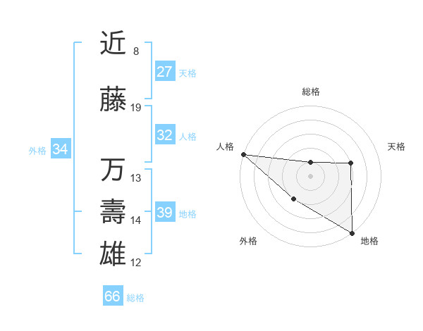 近藤 万壽雄さんの地格は39画の5点!