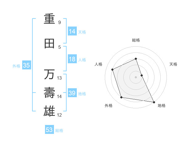 重田 万壽雄さんを姓名の画数から五運を鑑定