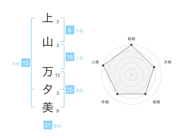 上山 万夕美さんを姓名の画数から五運を鑑定