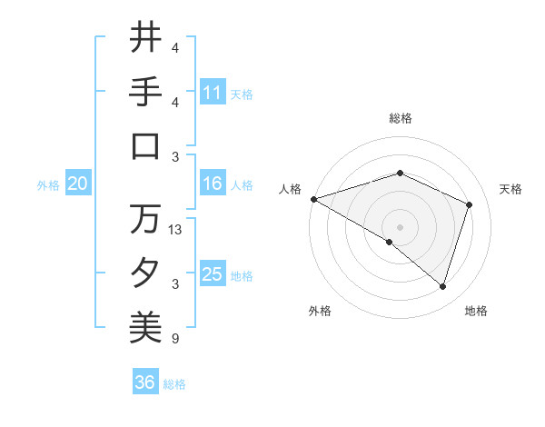 井手口 万夕美さんを姓名の画数から五運を鑑定
