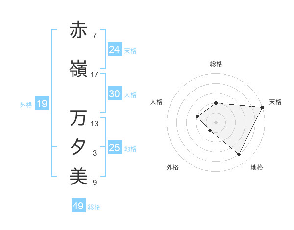 赤嶺 万夕美さんの天格は24画の5点!