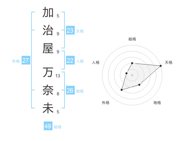 加治屋 万奈未さんの天格は23画の5点!