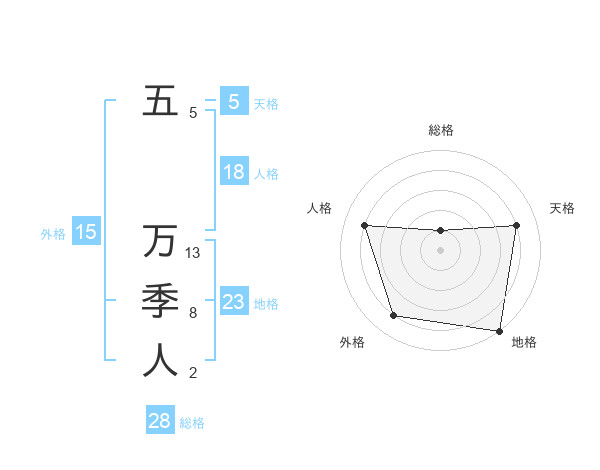 五 万季人さんの総格は28画の1点!