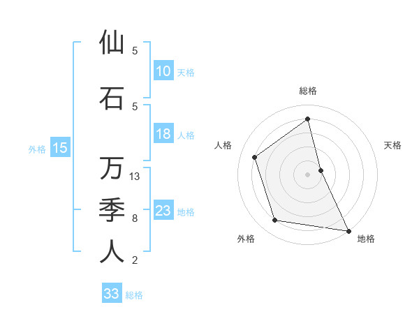 仙石 万季人さんを姓名の画数から五運を鑑定