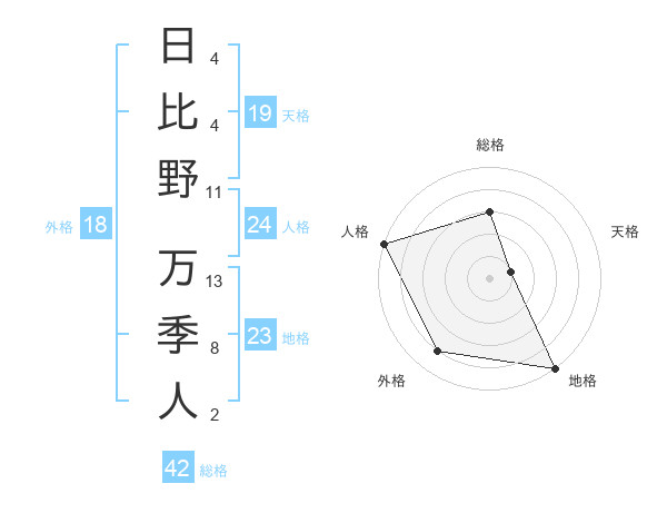 日比野 万季人さんを姓名の画数から五運を鑑定