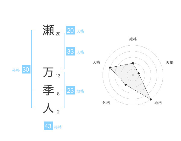 瀬 万季人さんの総格は43画の2点!