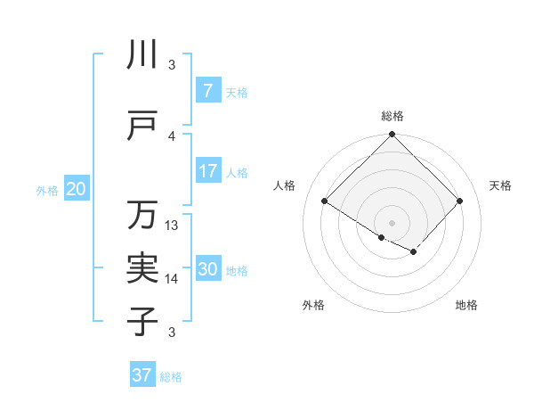 川戸 万実子さんを姓名の画数から五運を鑑定