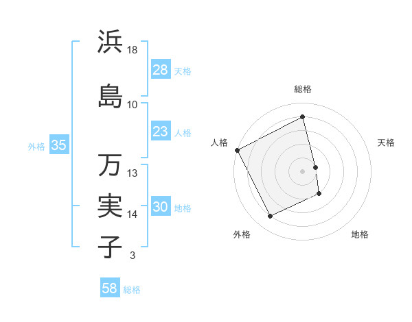 浜島 万実子さんを姓名の画数から五運を鑑定