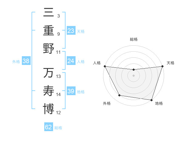 三重野 万寿博さんを姓名の画数から五運を鑑定