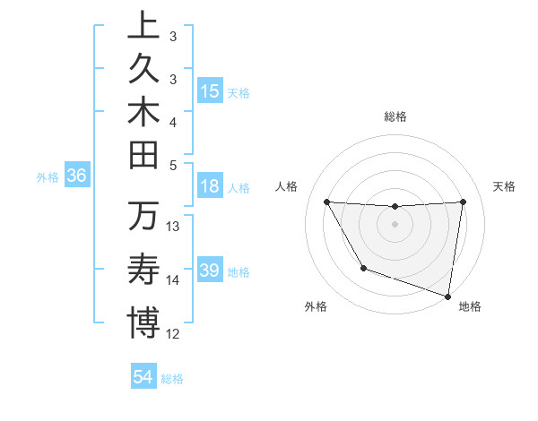 上久木田 万寿博さんを姓名の画数から五運を鑑定