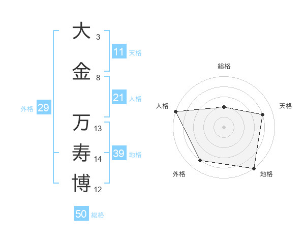 大金 万寿博さんの総格は50画の2点!