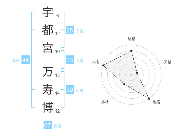 宇都宮 万寿博さんの総格は67画の4点!