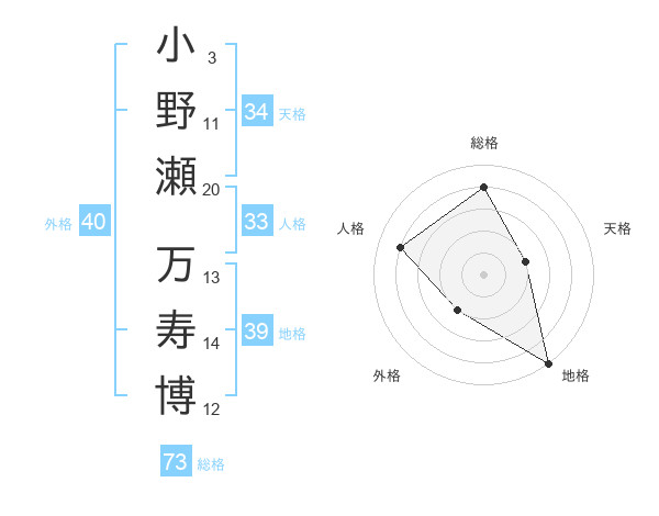小野瀬 万寿博さんを姓名の画数から五運を鑑定