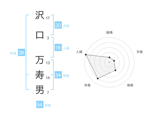 沢口 万寿男さんの外格は38画の4点