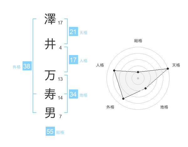 澤井 万寿男さんを姓名の画数から五運を鑑定