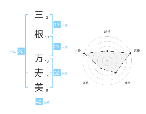 三根 万寿美さんを姓名の画数から五運を鑑定