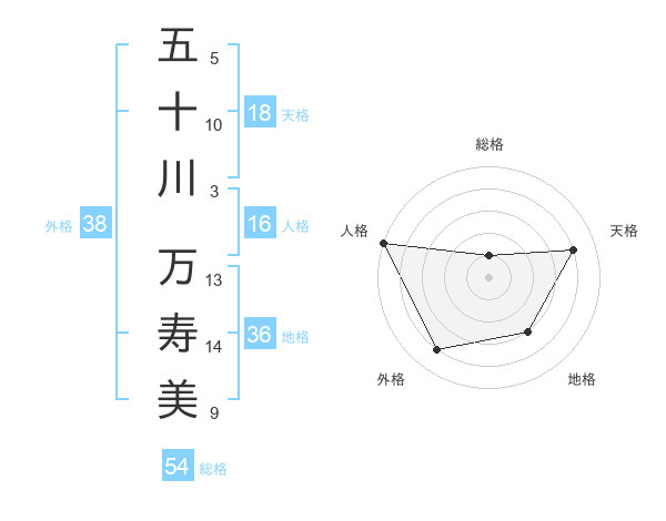 五十川 万寿美さんを姓名の画数から五運を鑑定