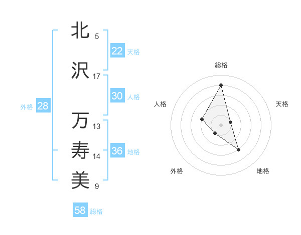 北沢 万寿美さんを姓名の画数から五運を鑑定