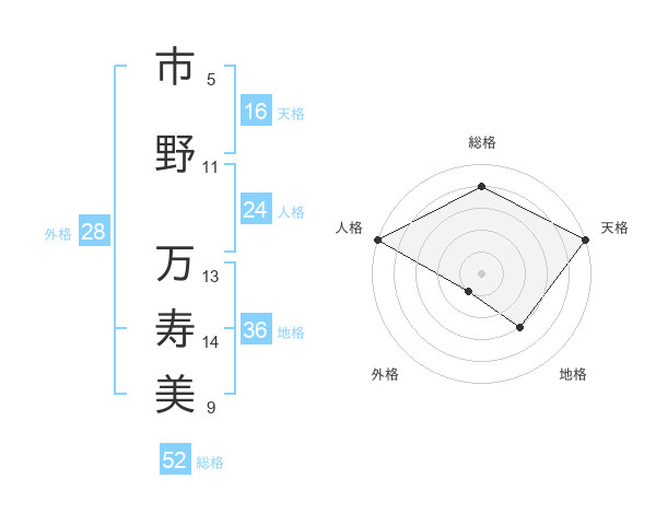 市野 万寿美さんを姓名の画数から五運を鑑定