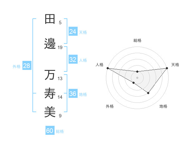 田邊 万寿美さんを姓名の画数から五運を鑑定
