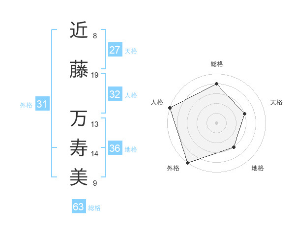 近藤 万寿美さんを姓名の画数から五運を鑑定